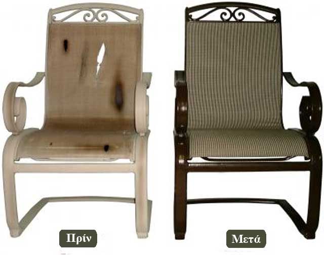 - Αντικατάσταση υφάσματος με δερματίνη σε καρέκλες.